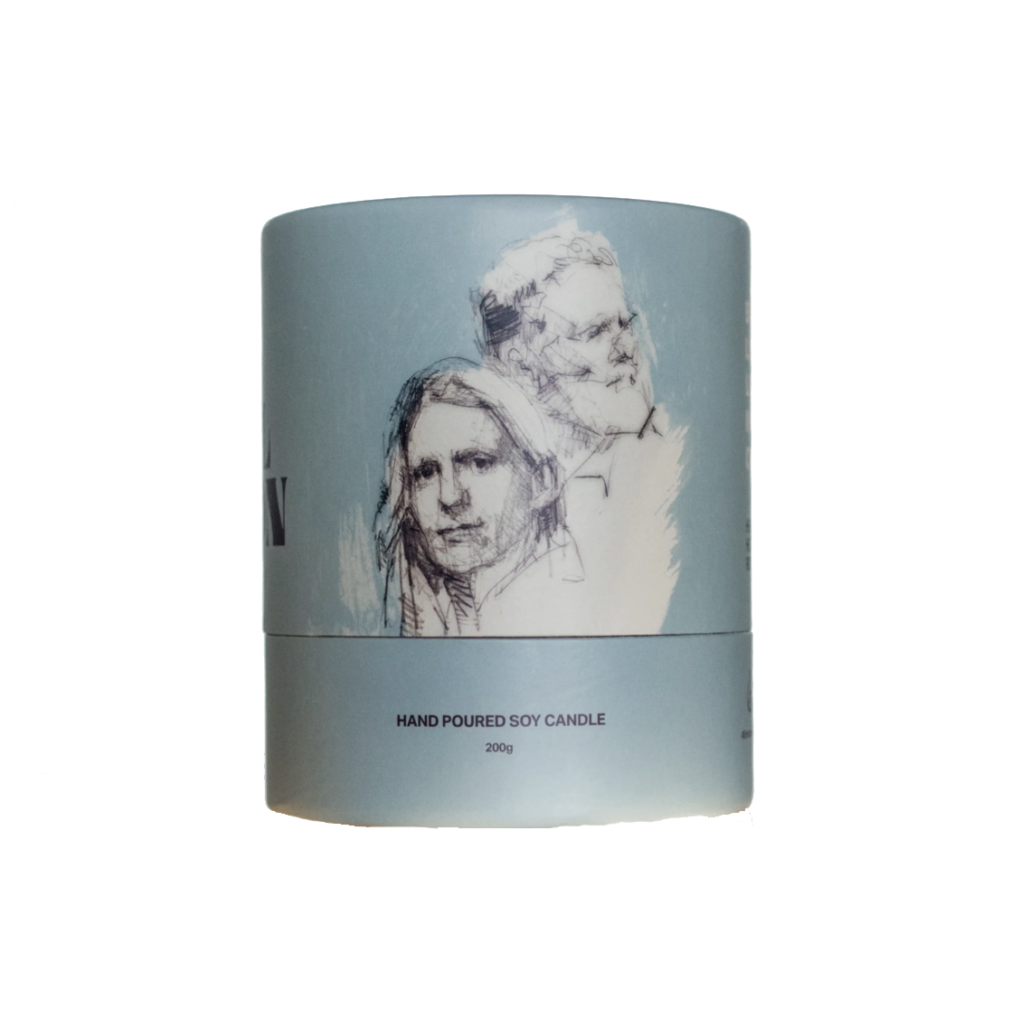 This candle is 100% soy wax, hand poured by myself in Portland, OR. They’re housed in frosted glass vessels adorned in art by Colin Davidson. A portrait of Glen and Marketa which appears on their newest upcoming Album, titled Forward.